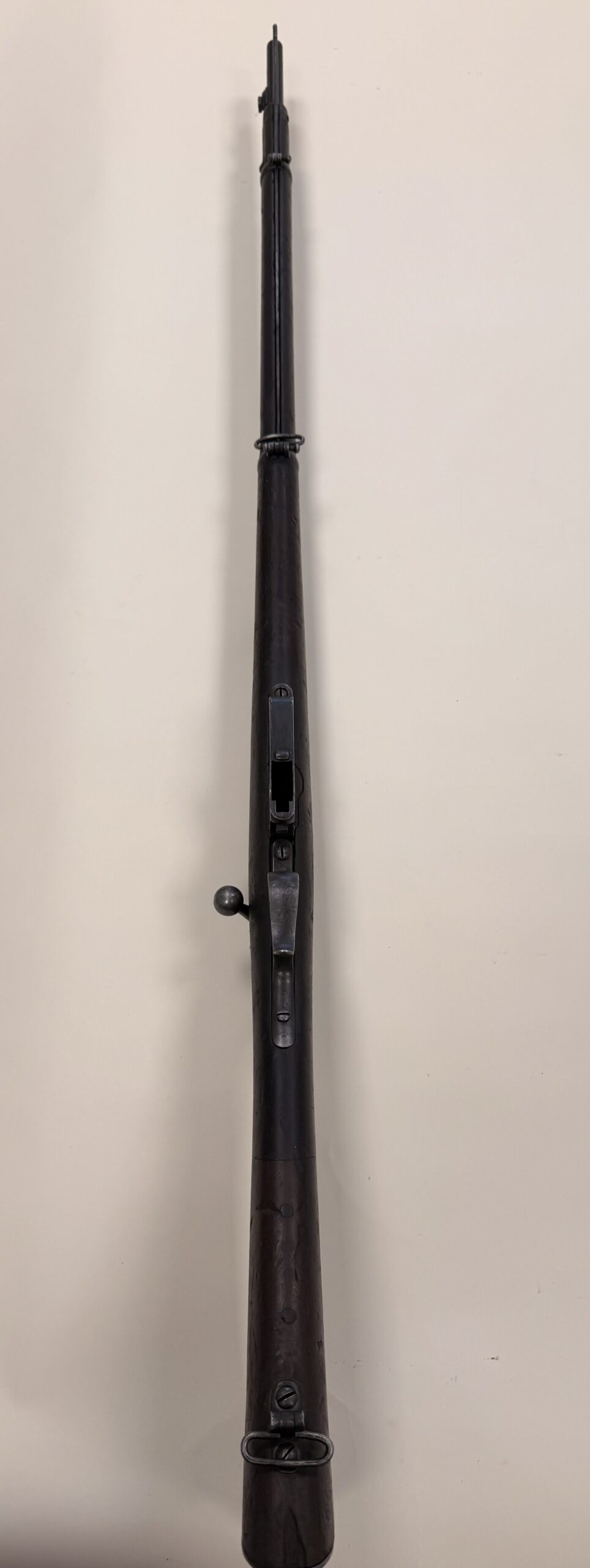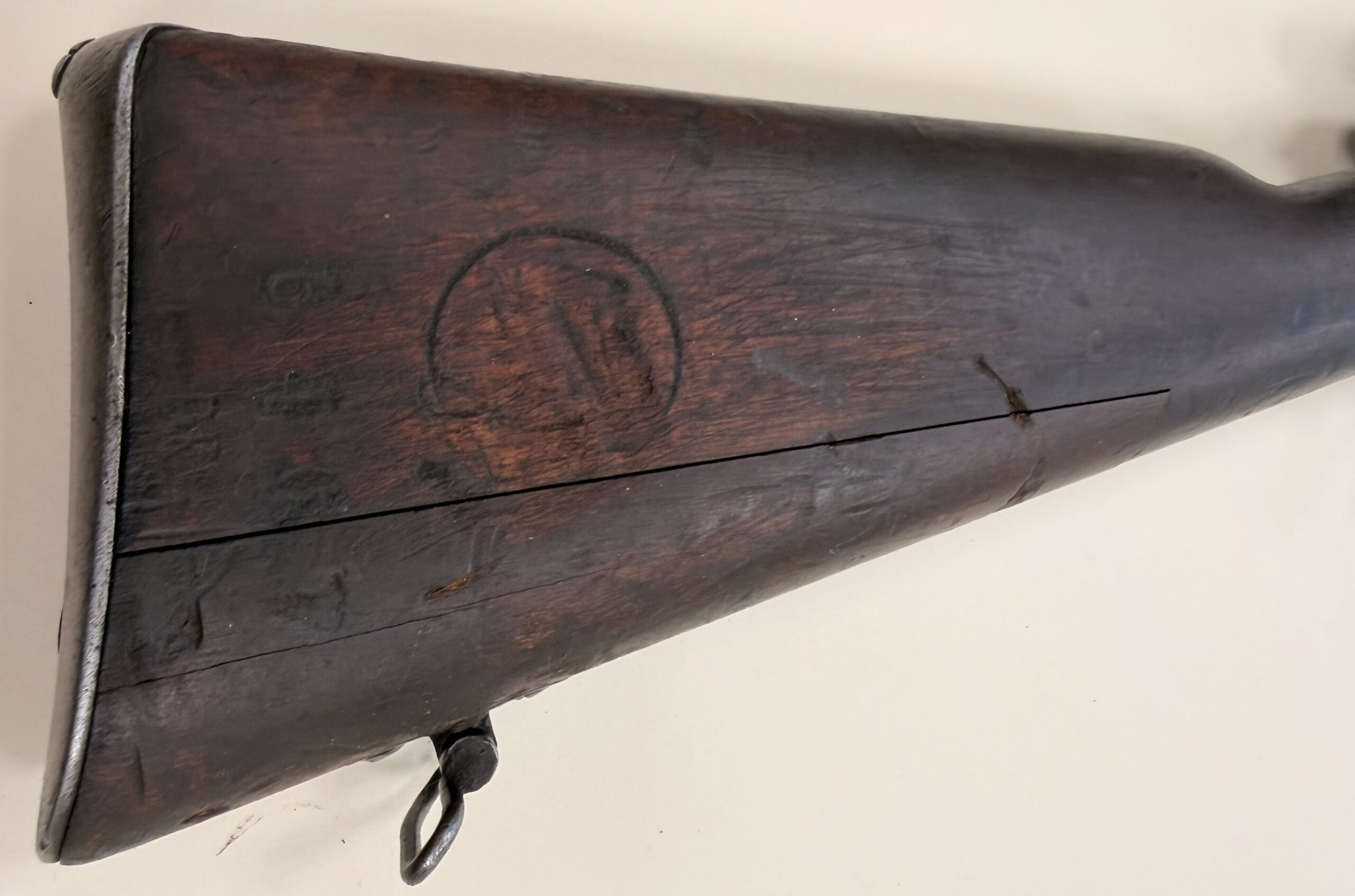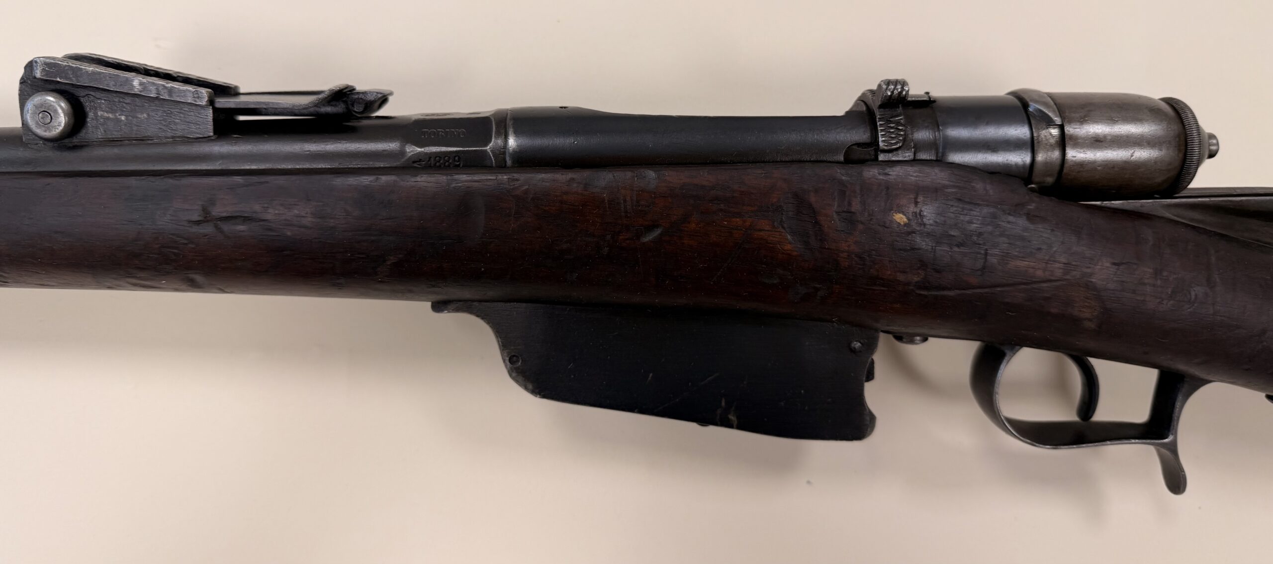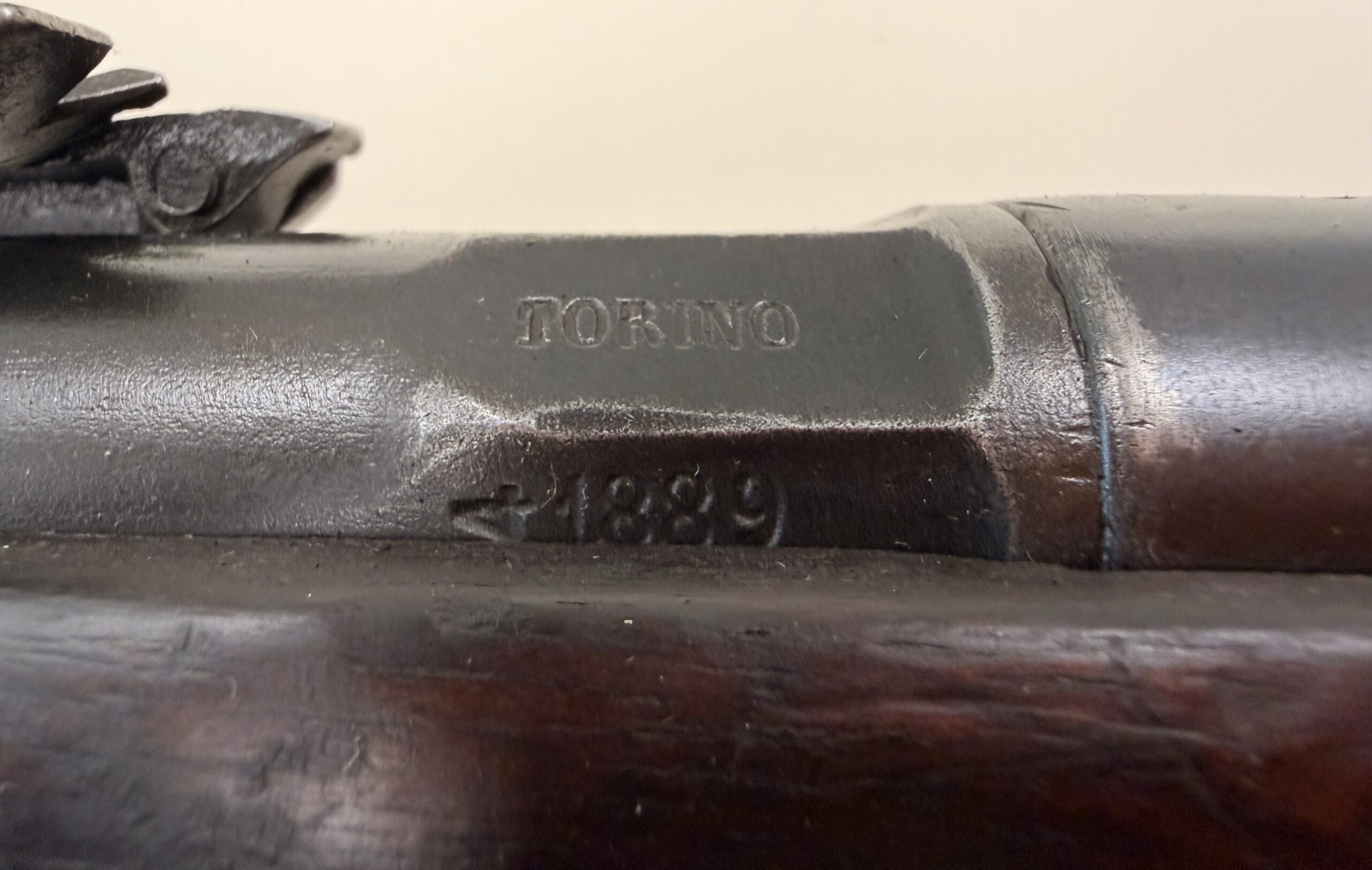 Manufactured in Torino in 1889, this classic rifle features an excellent bore — a true standout for its age! The metal finish is very good, and the wood remains in solid condition, showing only typical handling wear from decades of service. Please note: the buttstock has a replacement section, and the rifle includes its original cleaning rod.