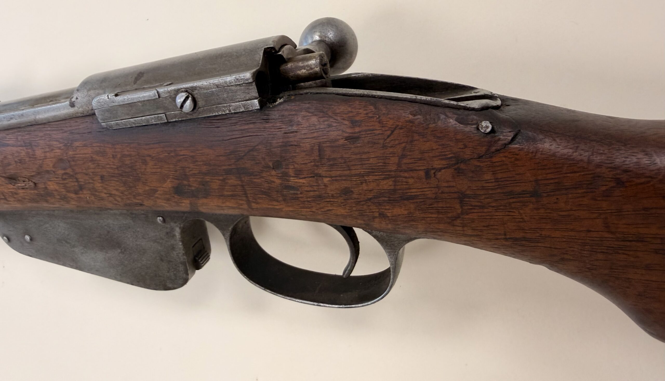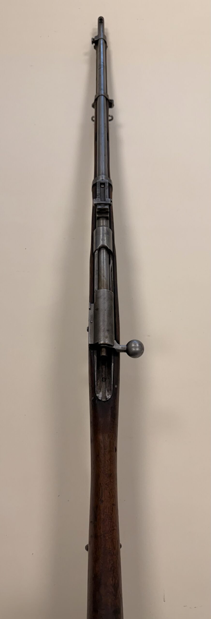 Step into the past with this historic Mannlicher 1888/95, a true collector’s piece! The bore is in fair condition, while the metal finish remains good overall. The wood shows honest service wear — dings and scratches from typical use.