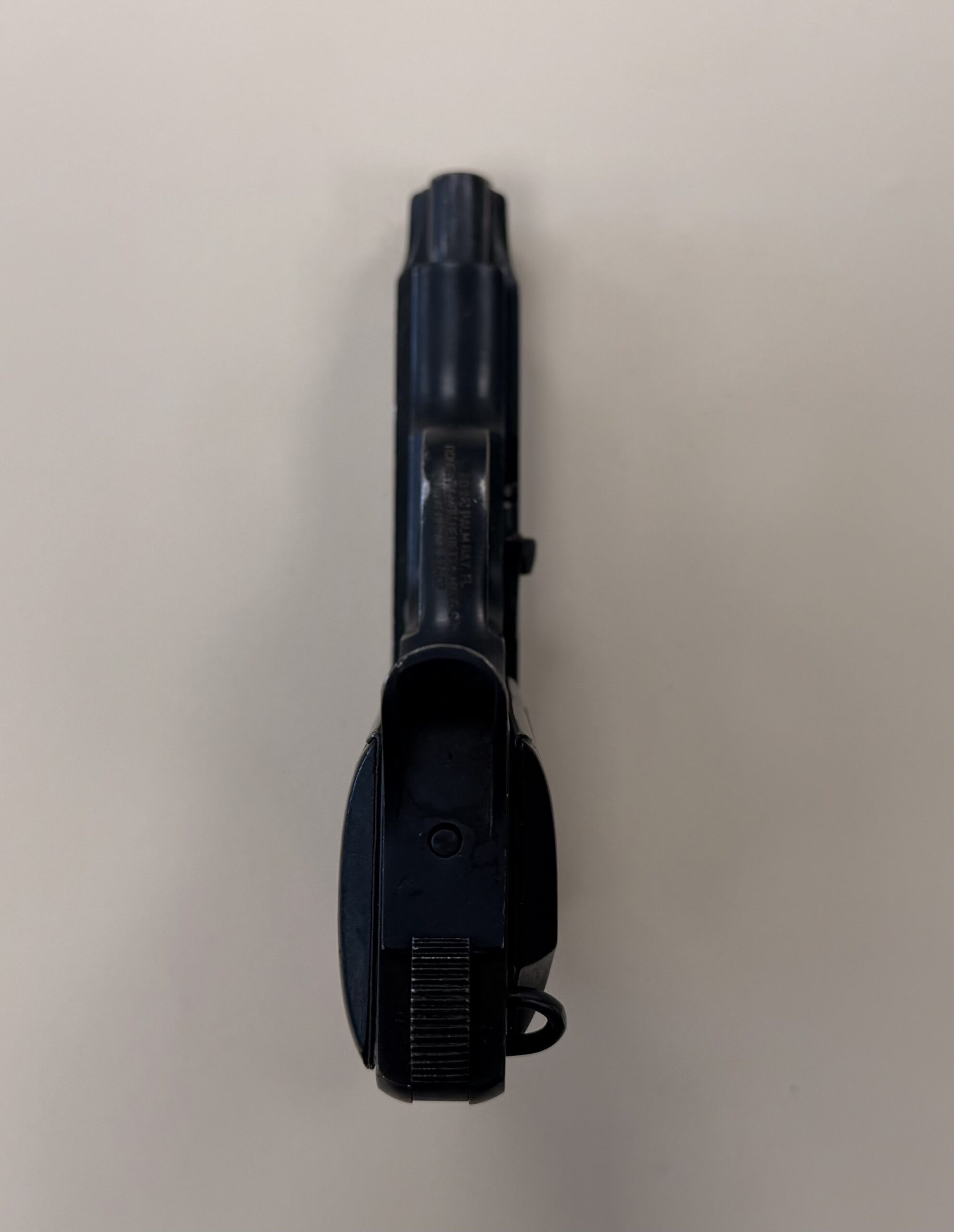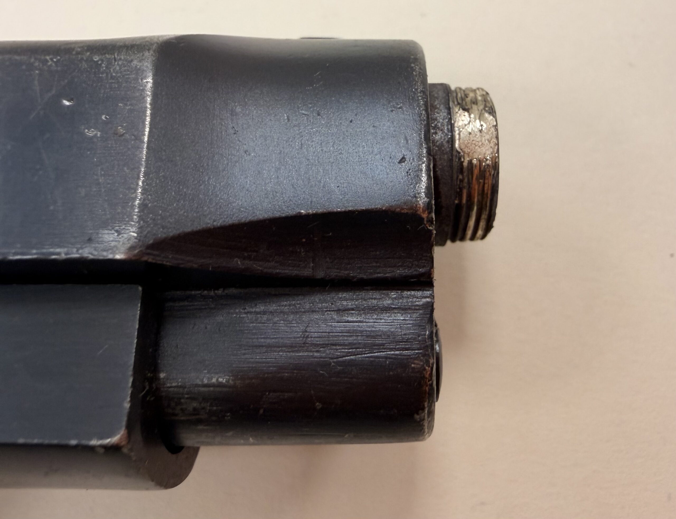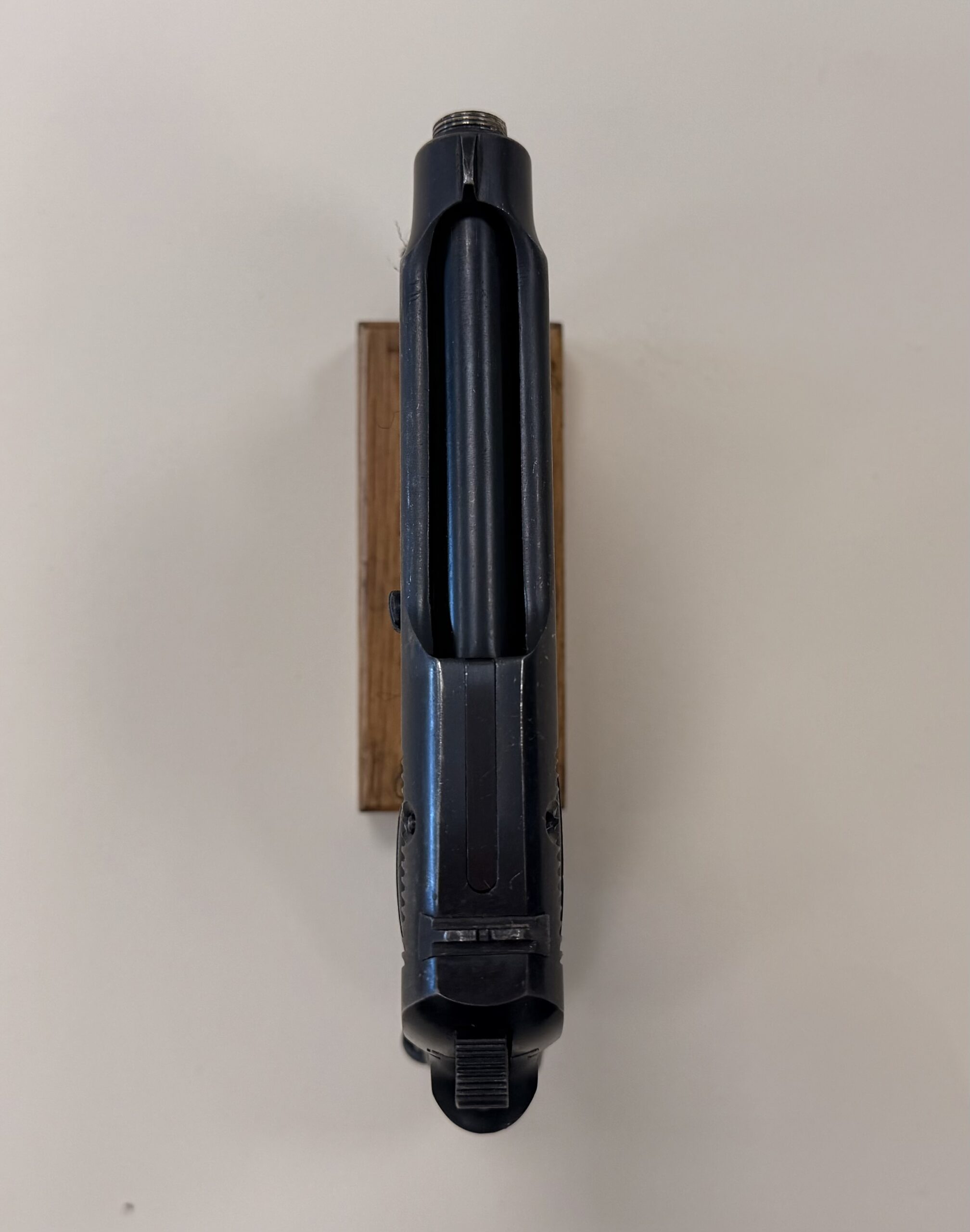 Offered here is a classic Beretta M1935, featuring its original threaded barrel. The pistol is in good overall condition, showing light surface wear consistent with age and use. The grips remain in very good condition, and the bore is good, though it would benefit from a light cleaning.