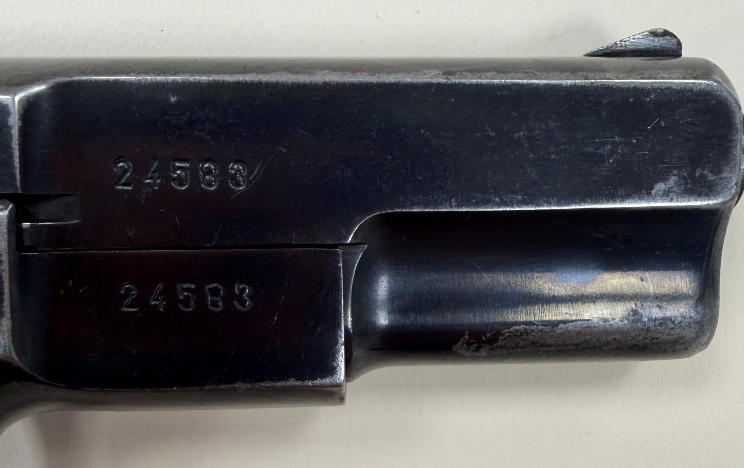 This example features matching numbers on the frame and slide, and is 100% functional. Import mark is discreetly placed on the rear strap beneath the hammer.