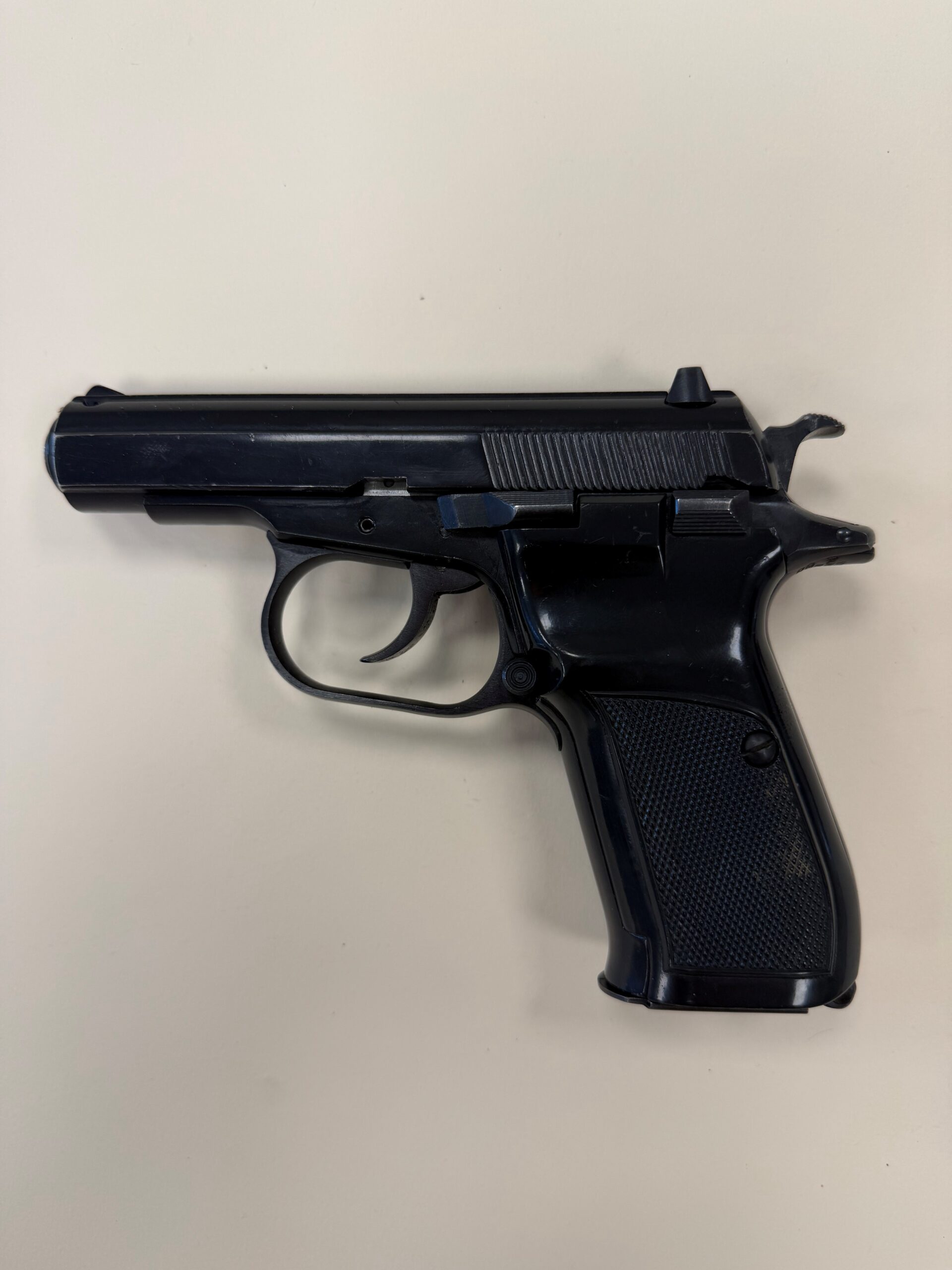 CZ82 Pistol with FREE original leather holster, 9×18 Makarov. This pistol is in very good condition. The grips are also in very good condition with no cracks. The bore is in very good condition. The pistol is numbers matching frame and slide.The pistol is 100% functional and comes with one 12 round magazine. The pistol is import marked on the rear strap underneath the hammer on the frame.
