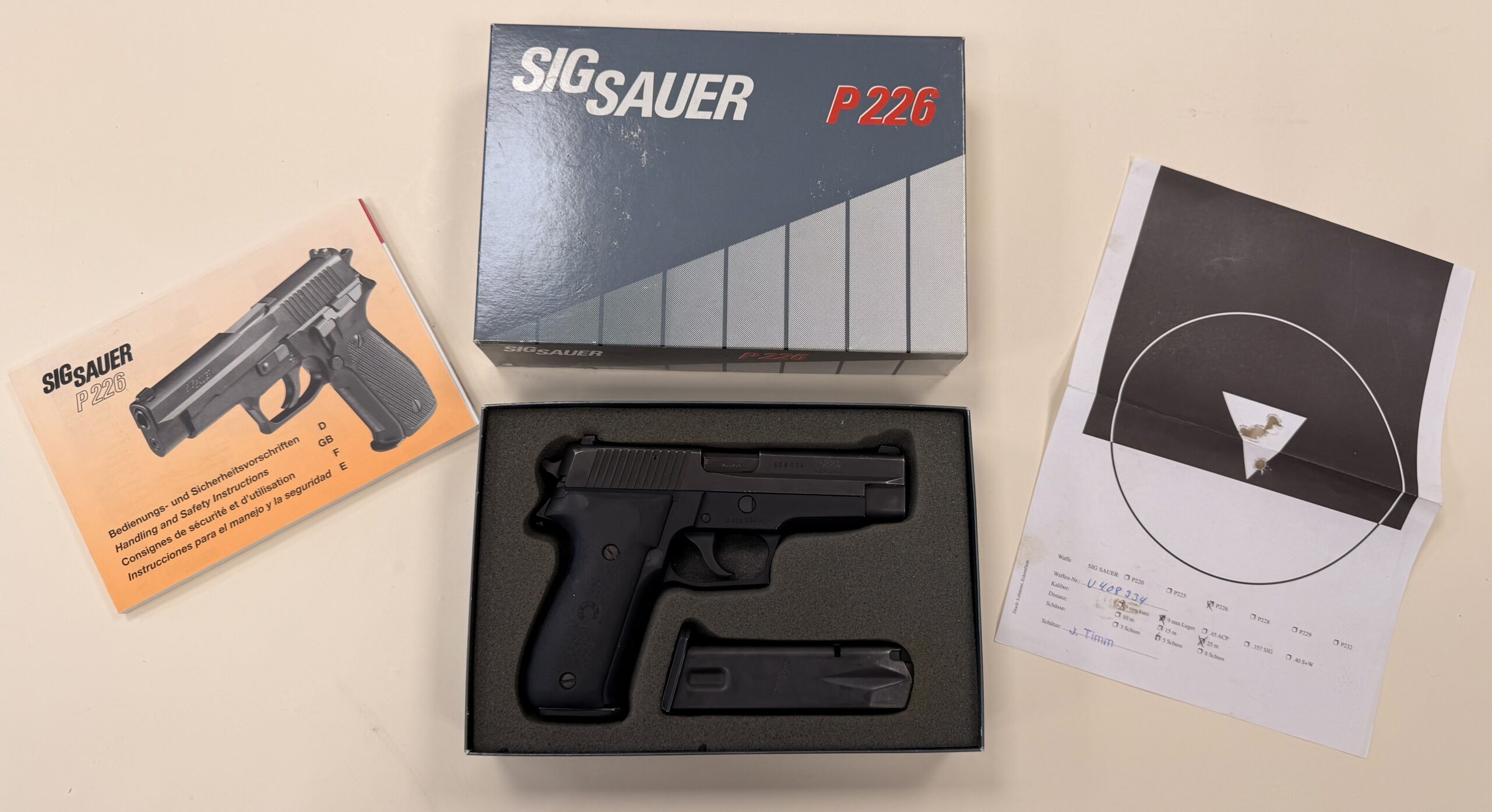 We’ve just received German SIG Sauer P226 in 9mm Parabellum / 9x19mm with the factory original box, Serial Number U408934.
