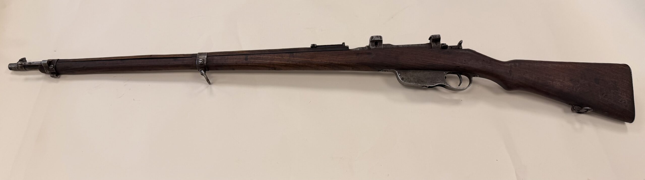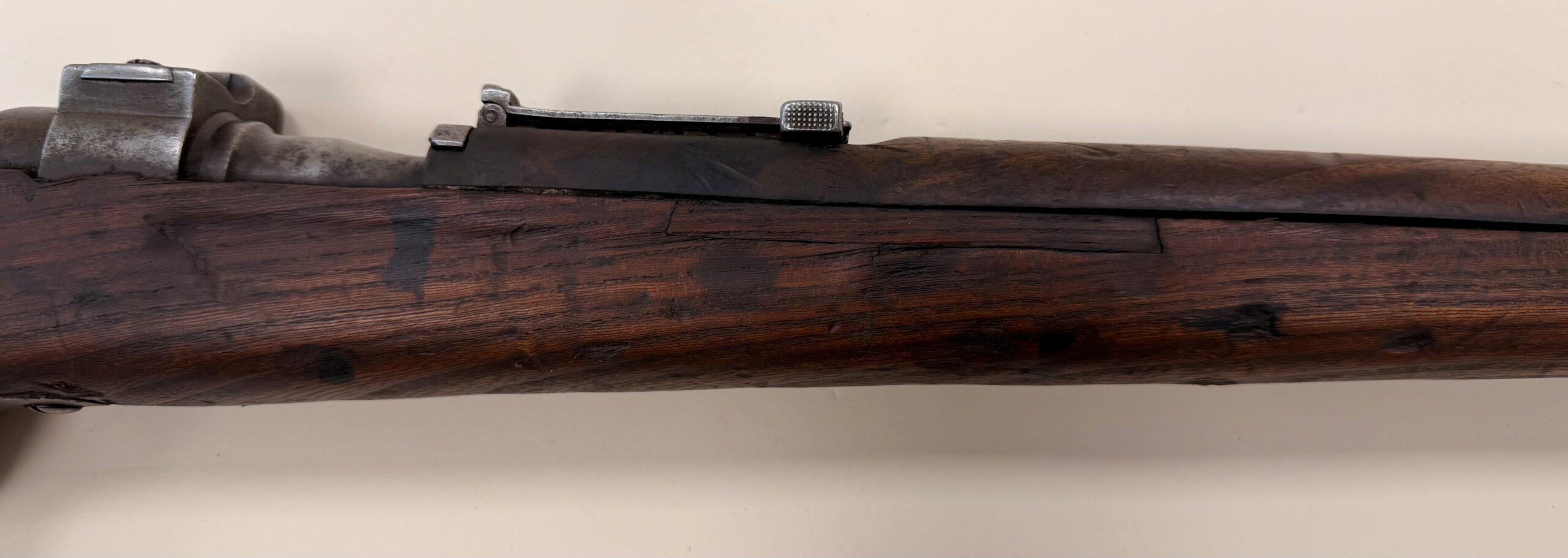 Offered for auction is an original Steyr M.95 Sniper Rifle, serial number 4602J. This rifle is in good overall condition, showing typical wear consistent with examples sourced from Ethiopia. The bore is in very good condition with strong rifling. The rifle has been test fired and is 100% functional. The action is smooth and fully operational, and the scope mount bases remain intact, a key feature for collectors. Please note: There is a very small stock repair on the right side near the rear sight. Please review the photos carefully.